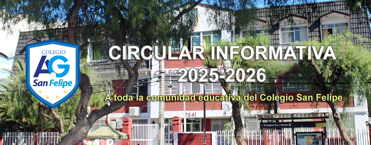 Informamos a toda la comunidad educativa del Colegio San Felipe, especialmente a Padres y Apoderados, que se encuentra a su disposición la Circular Informativa de Matrícula 2025-2026, la cual adjuntamos en el enlace de abajo. En esta circular damos a conocer las indicaciones generales y calendarios respectivos del proceso. También les recordamos que esta Circular Informativa se la enviamos a su correo electrónico, el cual nos proporcionaron ustedes cuando matricularon a su hijo(a) este año 2025.